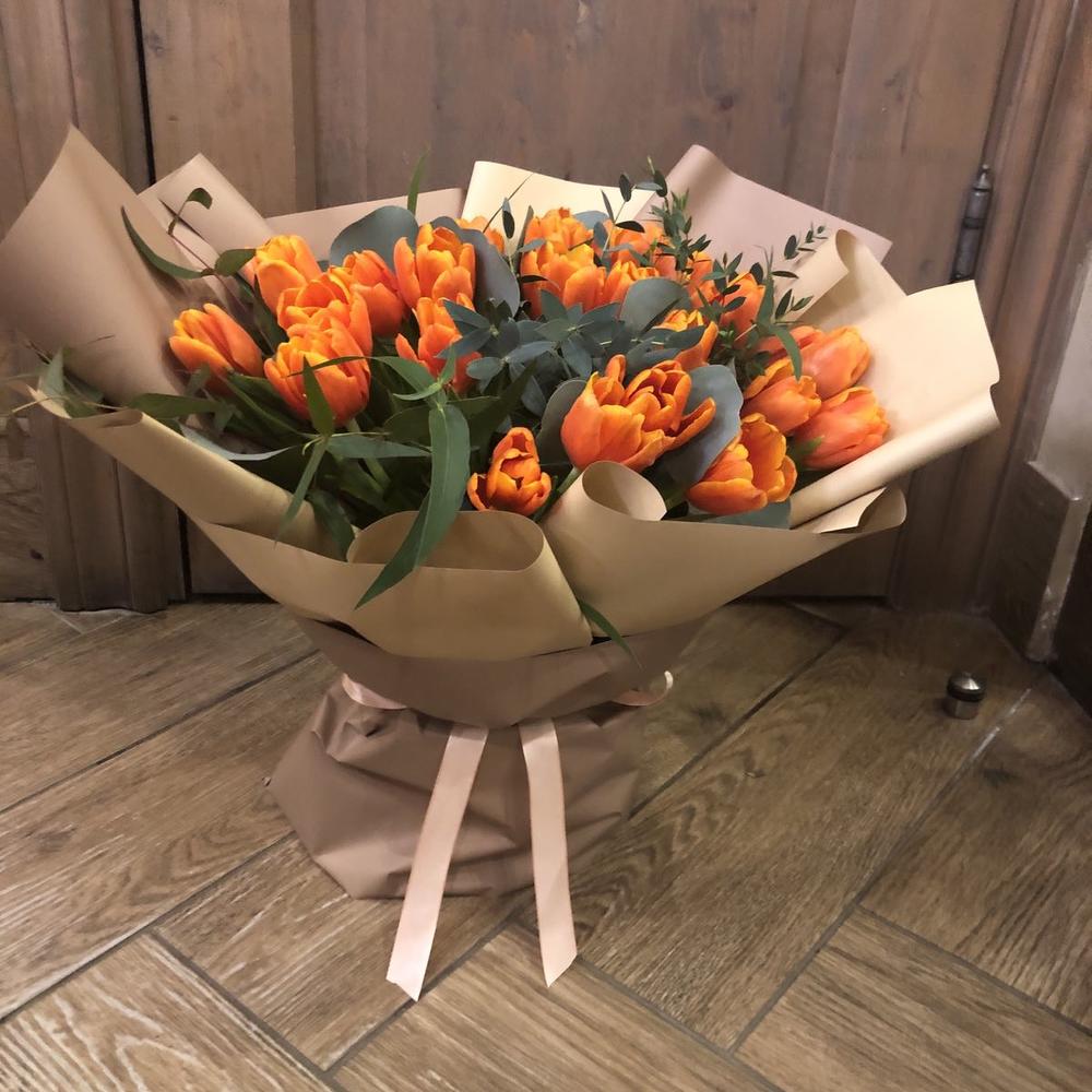 Большой букет из тюльпанов "Закат"