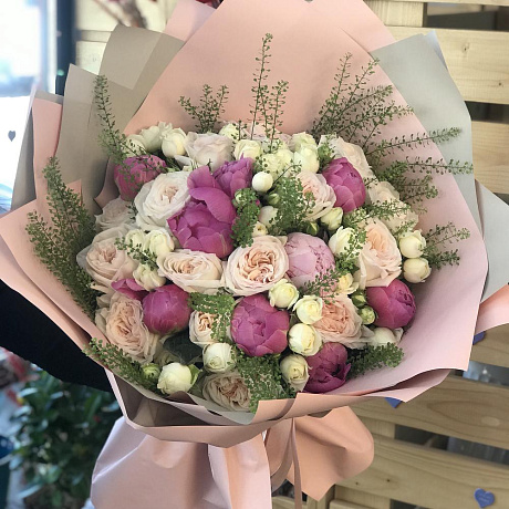 Закажите Букет из пионов и роз №160 с доставкой в Москве и МО.