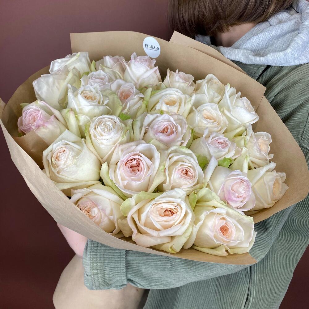 Букет пионовидных роз "White O hara" №2 — отличный выбор для подарка! На сайте вы найдете красочные фотографии, которые помогут сделать выбор. Цена букета — 9100 руб.