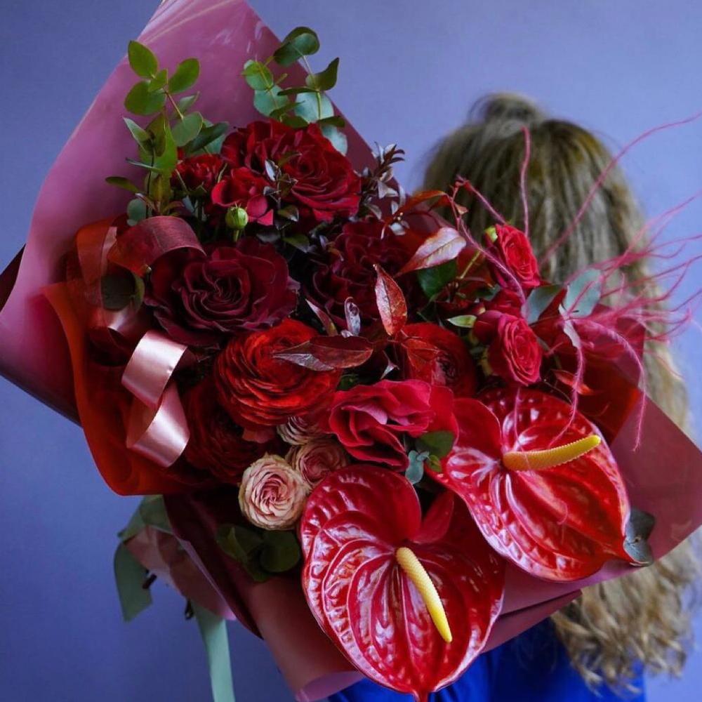 Закажите Красивый букет в красных оттенках-«Пламя» с доставкой в Москве и МО.