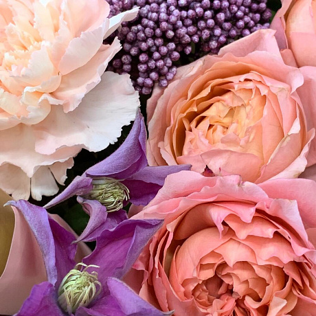 Закажите Нежный букет с пионовидной розой и ягодами озотамнуса с доставкой в Москве и МО.