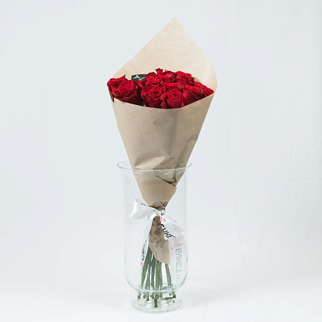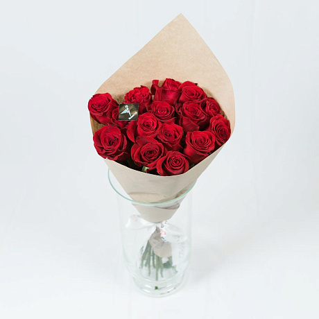 Закажите 15 роз премиум 60 см в крафт-бумаге с доставкой в Москве и МО.