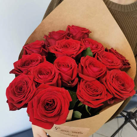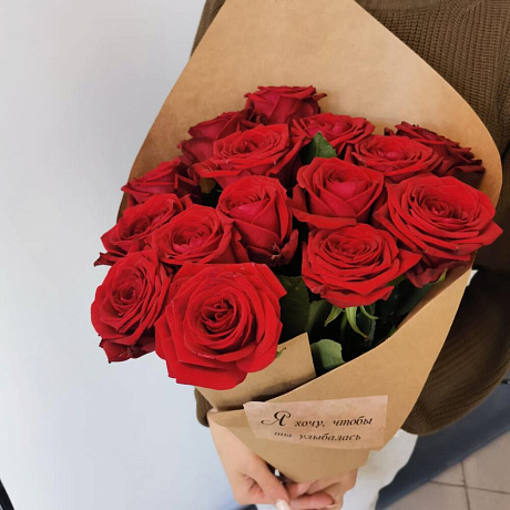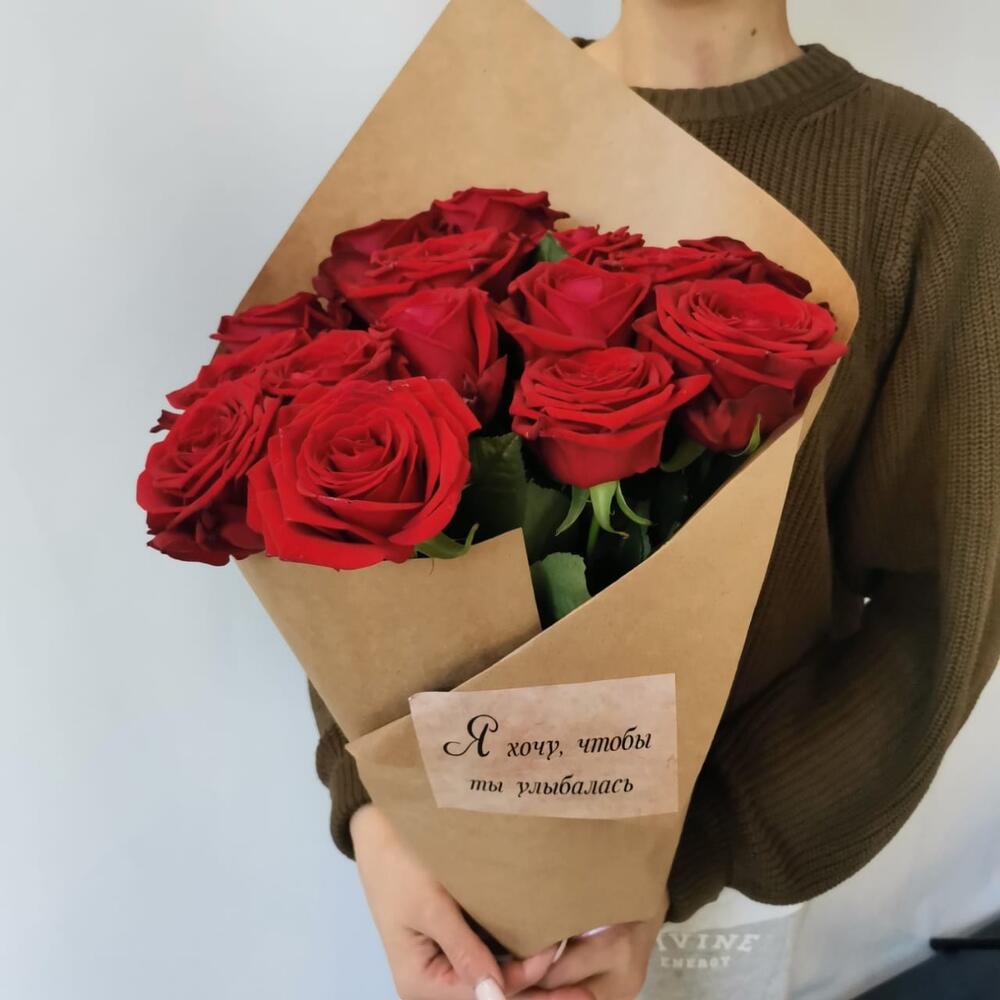 Закажите 15 роз в крафте с наклейкой с доставкой в Москве и МО.
