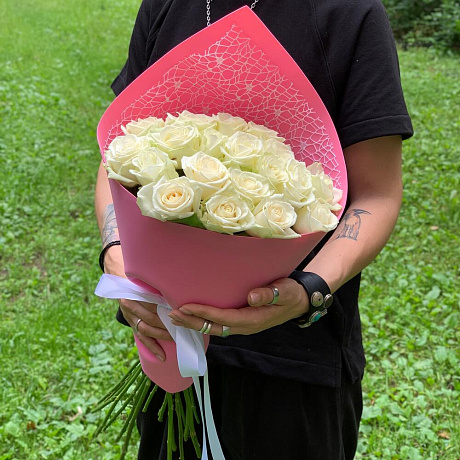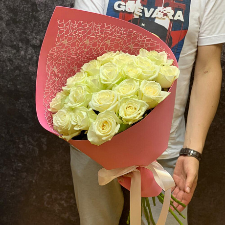 Закажите 19 белых роз в фомиаране с сеткой с доставкой в Москве и МО.