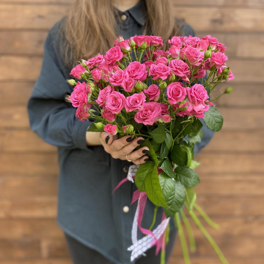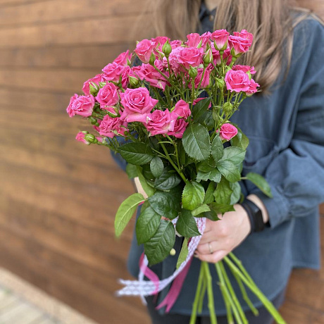 Закажите 19 Кустовых роз под ленту с доставкой в Москве и МО.