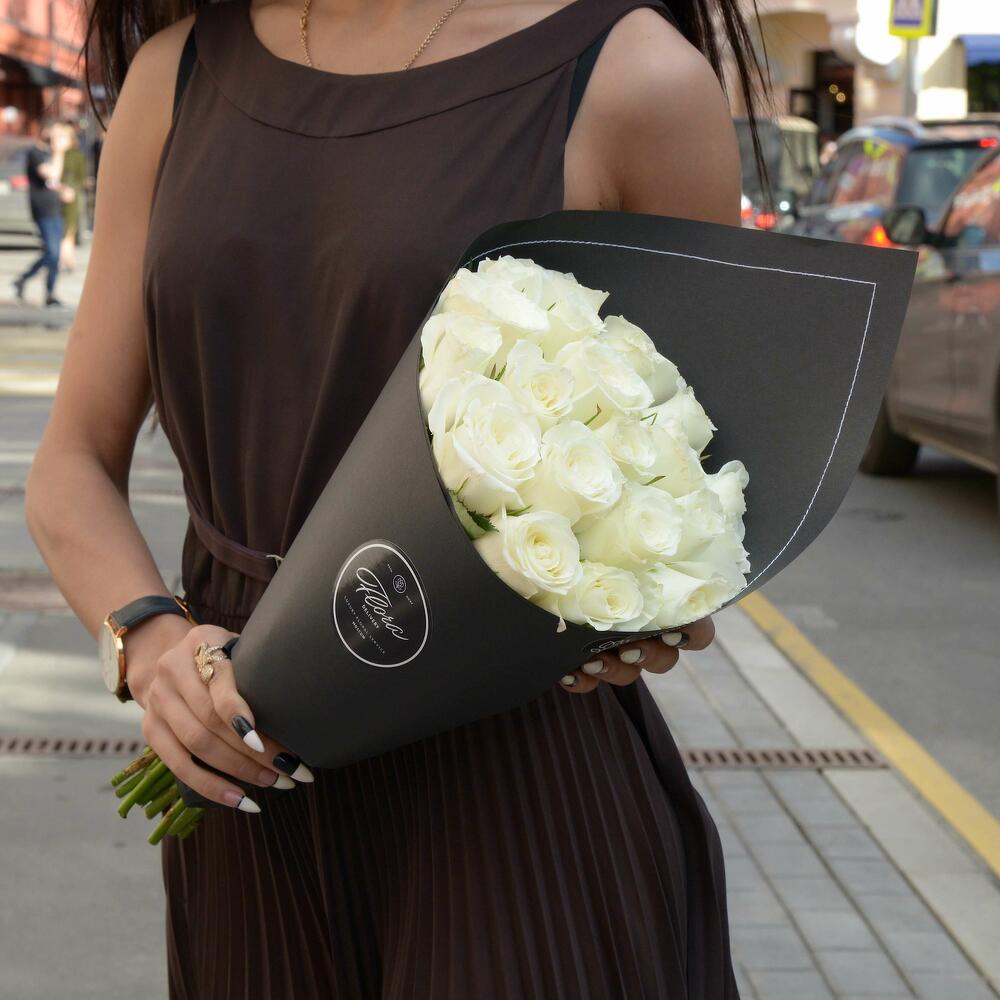 21 белая роза White Kenya BLVCK — отличный выбор для подарка! На сайте вы найдете красочные фотографии, которые помогут сделать выбор. Цена букета — 4000 руб.