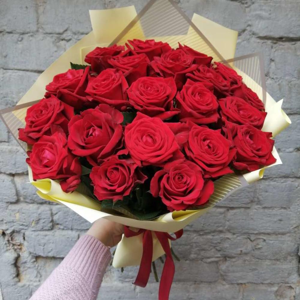 Закажите 21 красная роза в корейской упаковке 50 см с доставкой в Москве и МО.