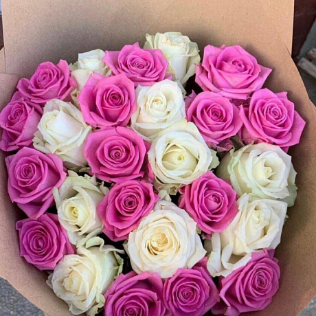 Закажите 21 Роза микс бело-розовая с доставкой в Москве и МО.