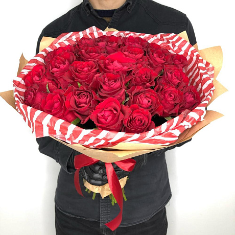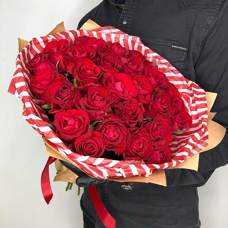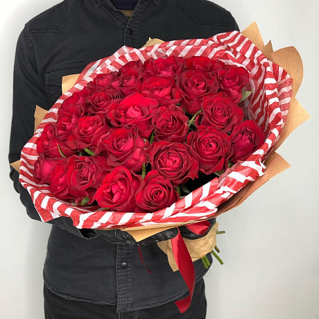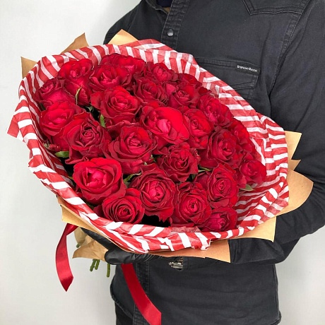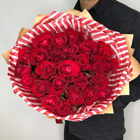 Закажите 25 красных роз в стильной упаковке с доставкой в Москве и МО.