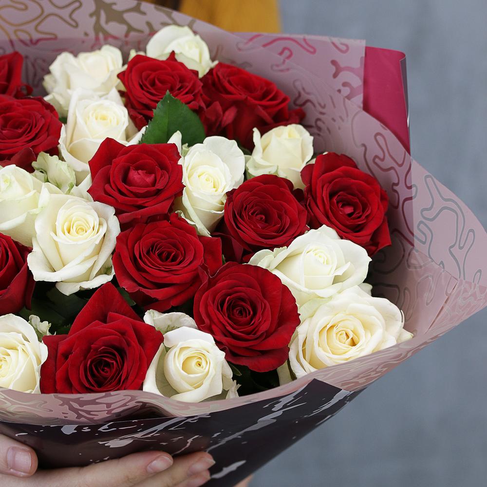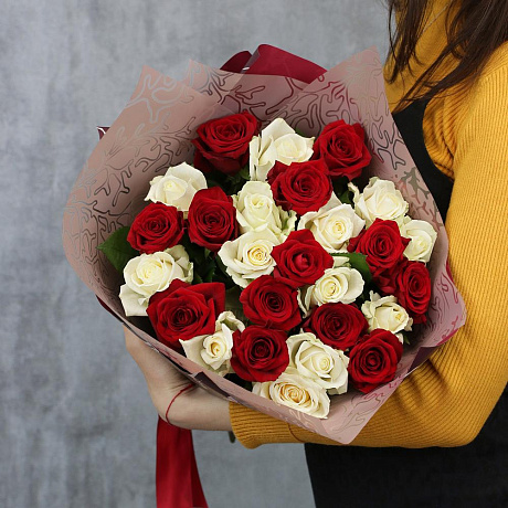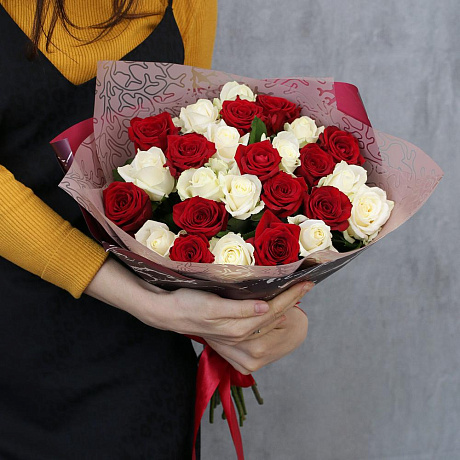 Закажите 25 роз яркий микс 50 см с доставкой в Москве и МО.