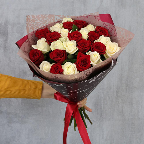 25 роз яркий микс 50 см — отличный выбор для подарка! На сайте вы найдете красочные фотографии, которые помогут сделать выбор. Цена букета — 4700 руб.