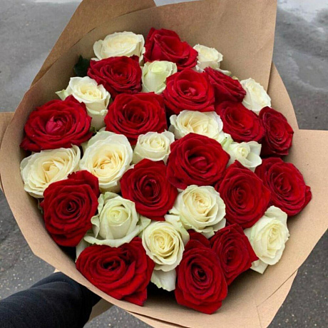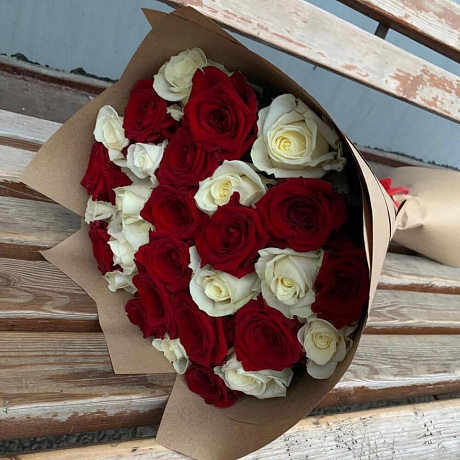 Закажите 29 роз микс белые и красные с доставкой в Москве и МО.