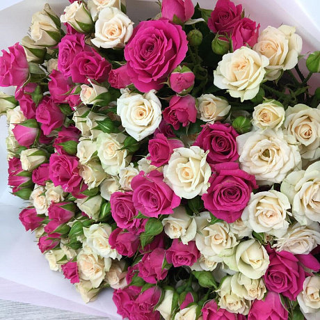 Закажите 35 кустовых роз в дизайнерской пленке с доставкой в Москве и МО.