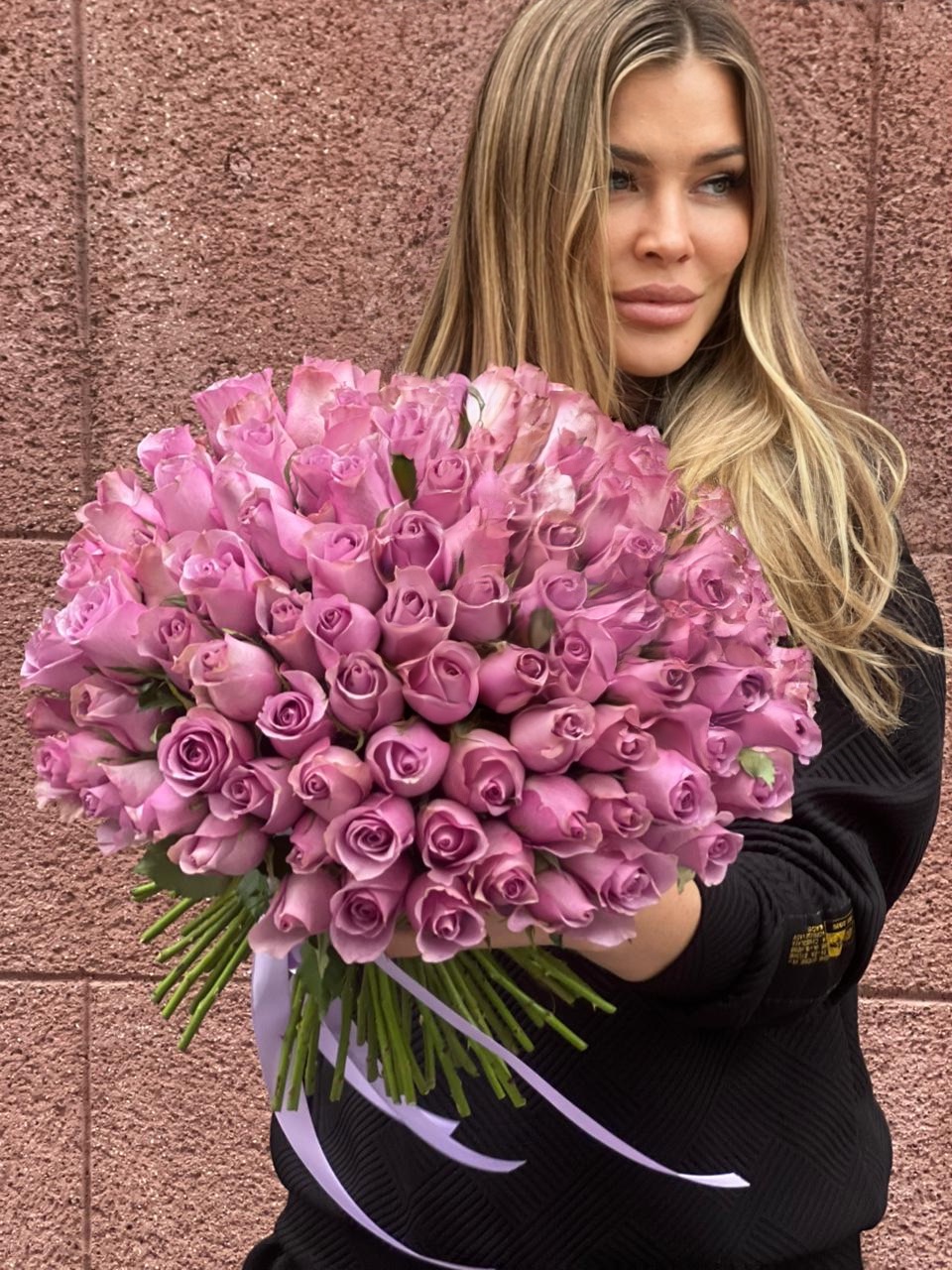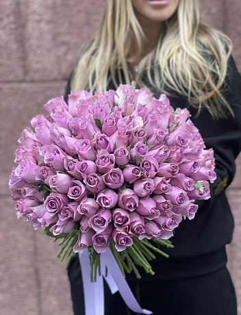 Состав: Роза Кенийская - 101 шт.; Упаковка дизайнерская - 2 шт.; Лента атласная - 2 шт.