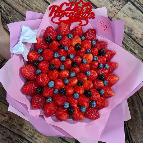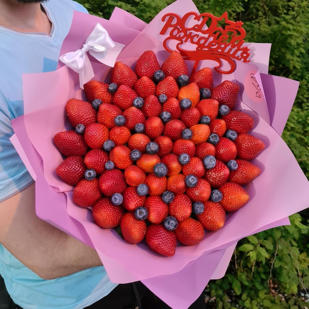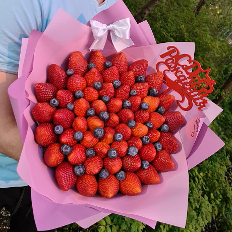 Букет Клубника-голубика — отличный выбор для подарка! На сайте вы найдете красочные фотографии, которые помогут сделать выбор. Цена букета — 5100 руб.