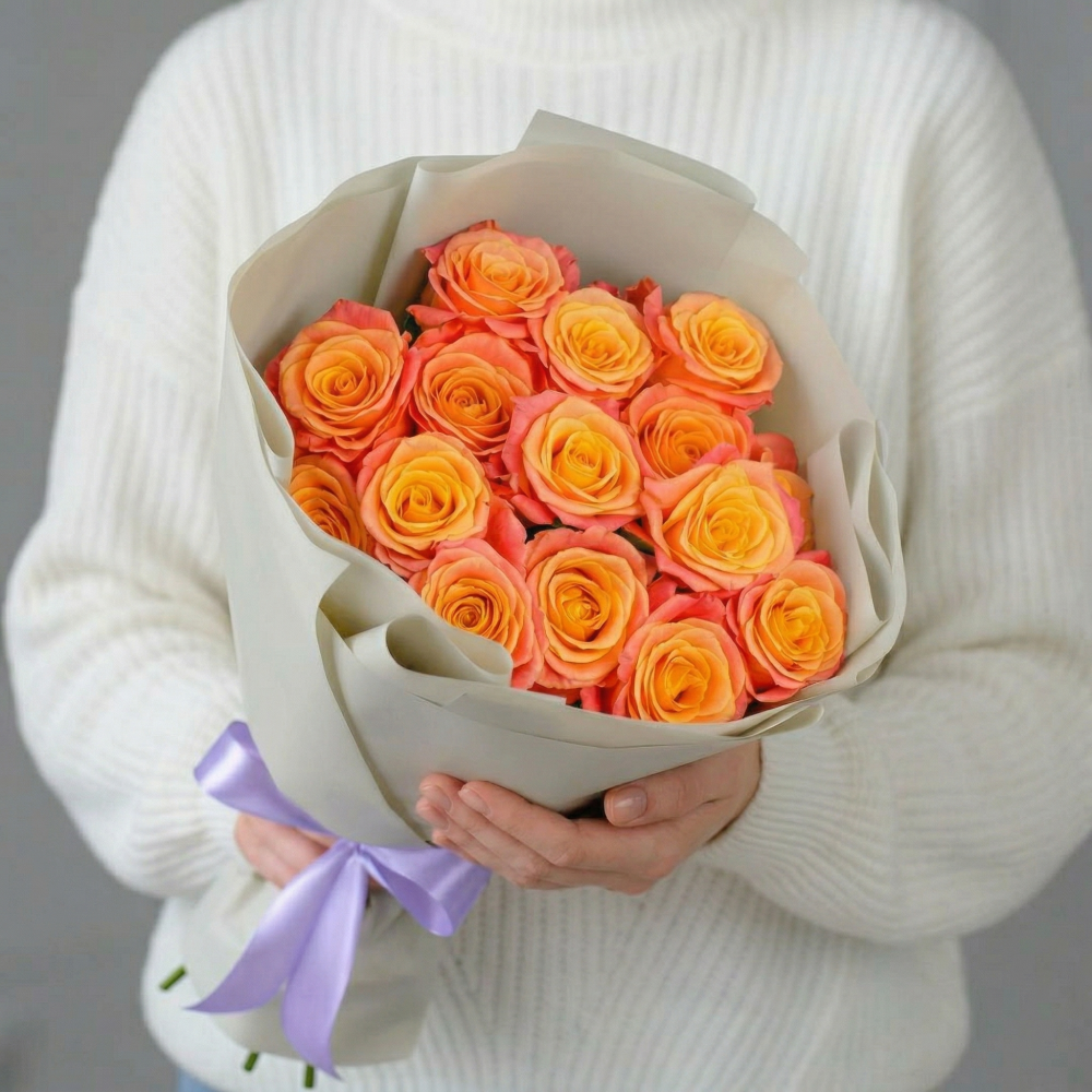 Закажите Букет 15 коралловых роз «Мисс Пигги» с доставкой в Москве и МО.