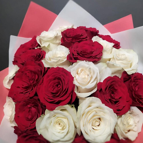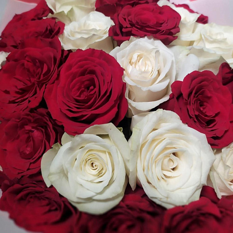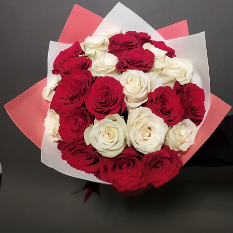 Закажите Букет 25 роз микс красная и белая роза с доставкой в Москве и МО.