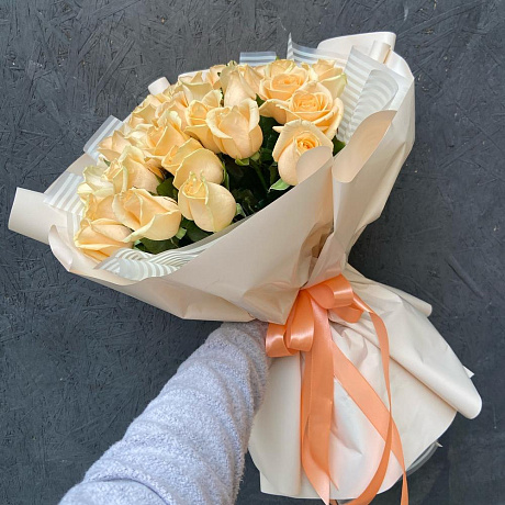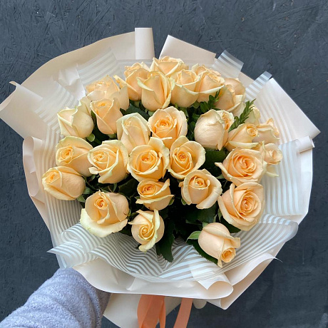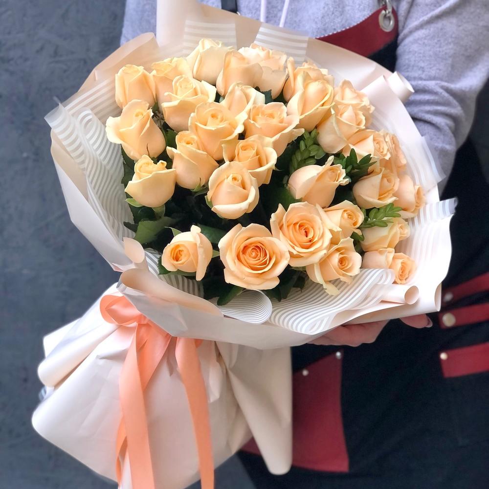 Закажите Букет 35 персиковых роз «Аваланж пич» с доставкой в Москве и МО.