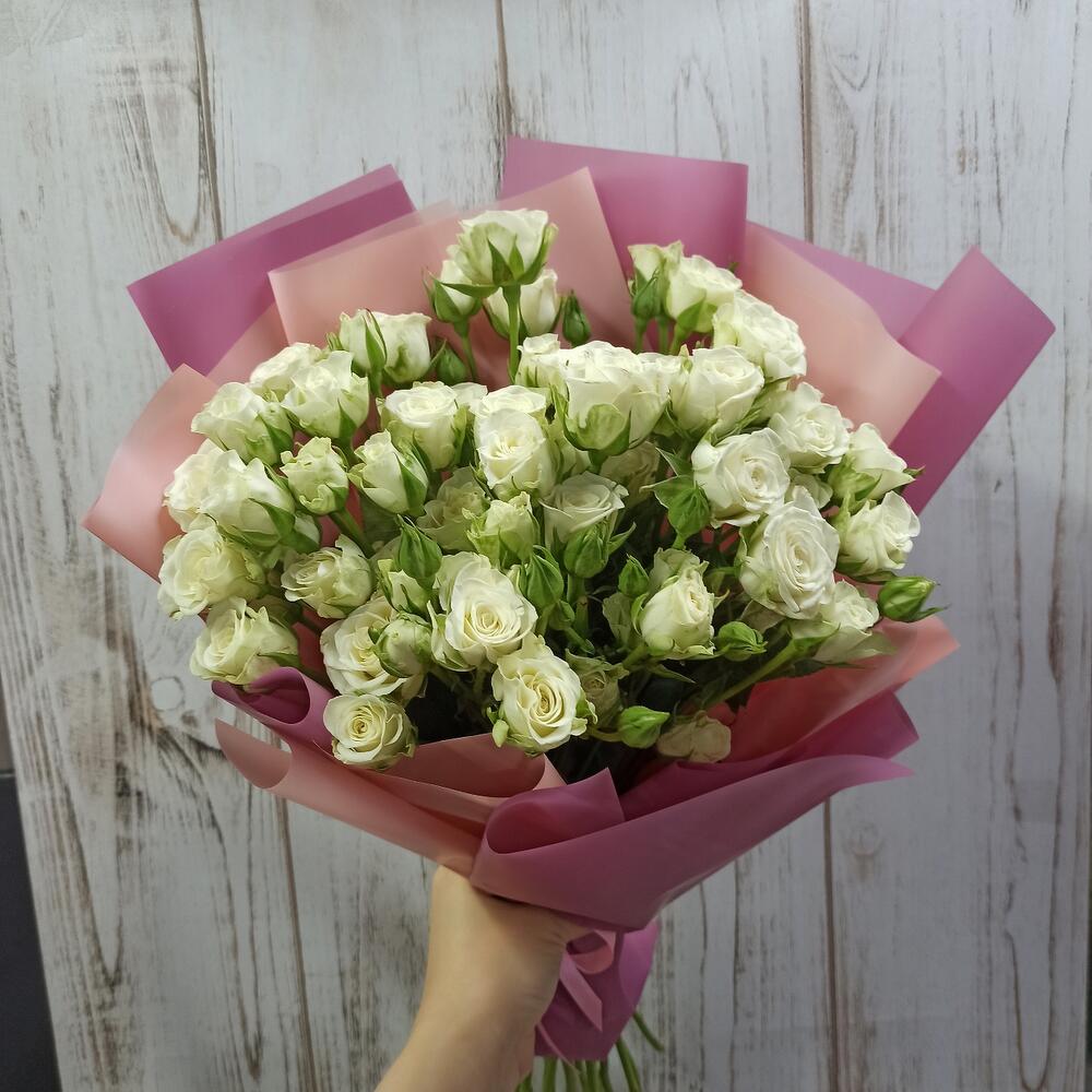 Закажите Букет белоснежных кустовых роз №2 с доставкой в Москве и МО.