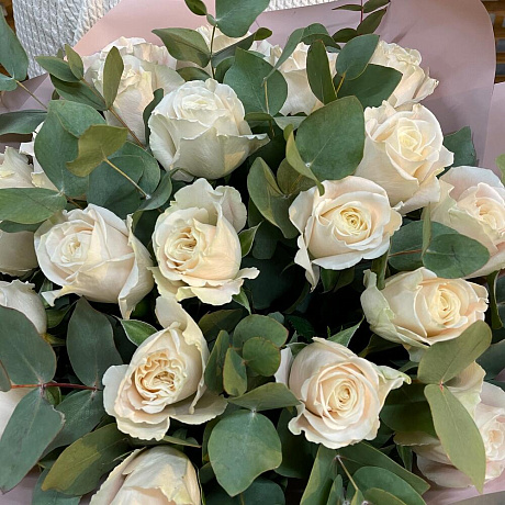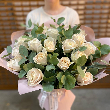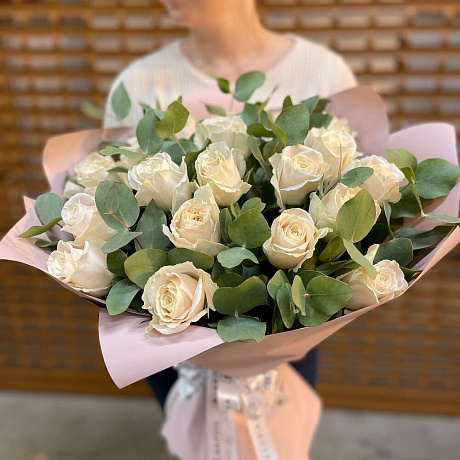 Закажите Букет белых роз с эвкалиптом с доставкой в Москве и МО.