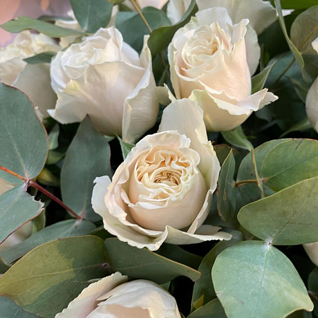 Букет белых роз с эвкалиптом
