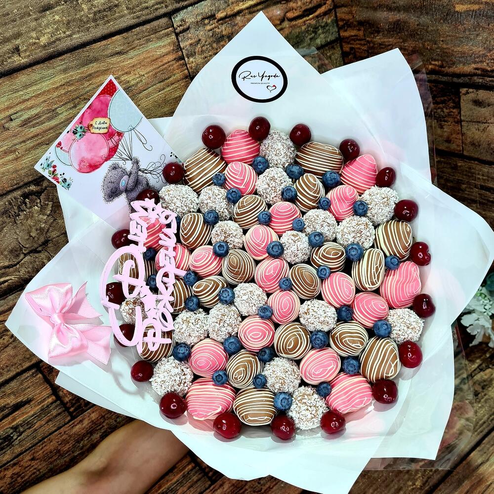 Букет Дамские штучки с черешней — отличный выбор для подарка! На сайте вы найдете красочные фотографии, которые помогут сделать выбор. Цена букета — 8200 руб.