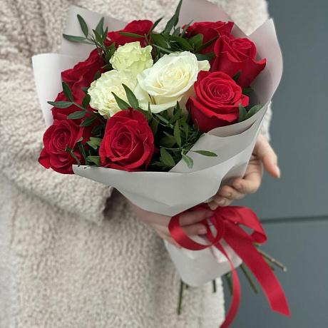 Закажите Букет Фея из красных и белых роз с доставкой в Москве и МО.