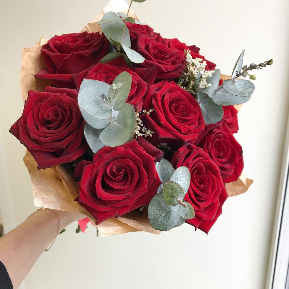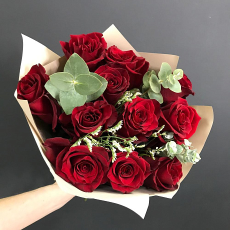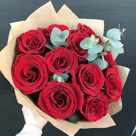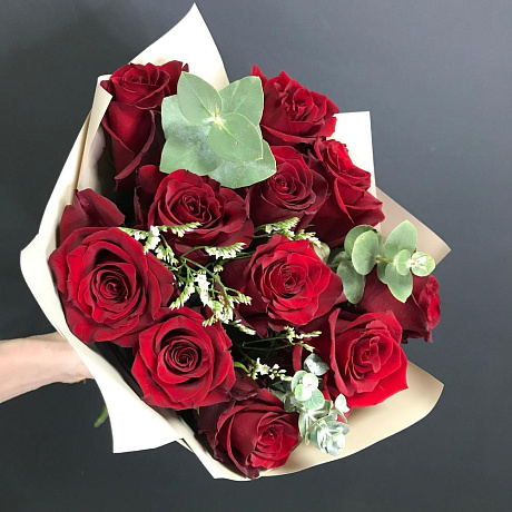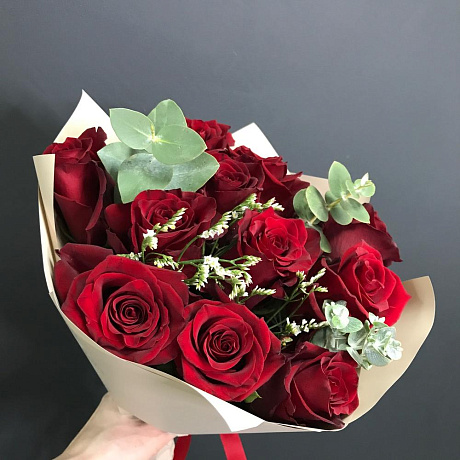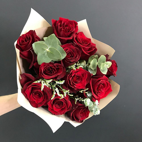 Закажите Букет из 11 роз и эвкалипта с доставкой в Москве и МО.
