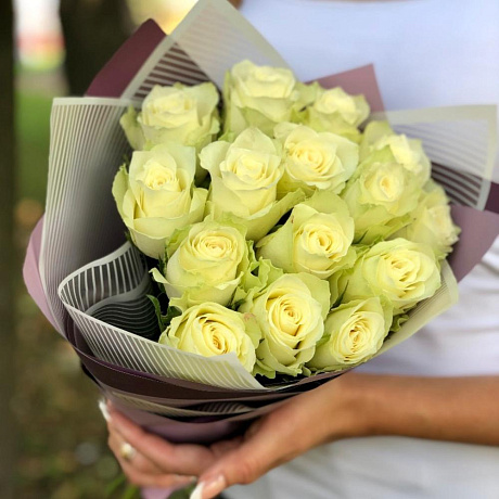 Закажите Букет из 15 белых роз премиум 50 см с доставкой в Москве и МО.