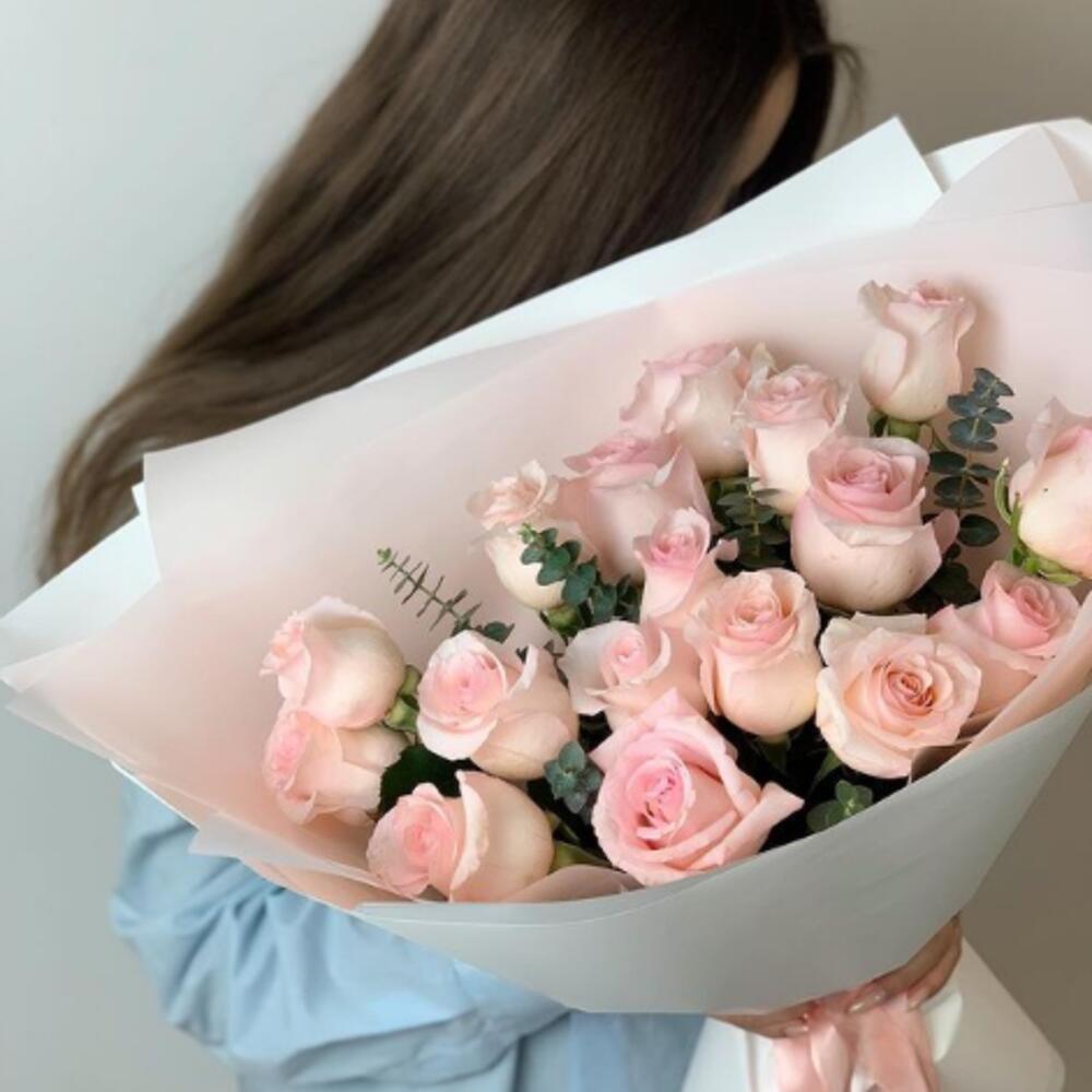 Закажите Букет из 17 нежных роз с добавлением эвкалипта с доставкой в Москве и МО.