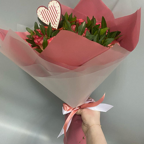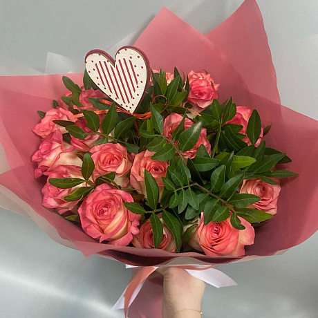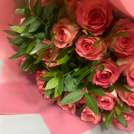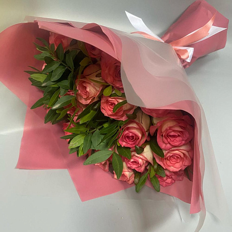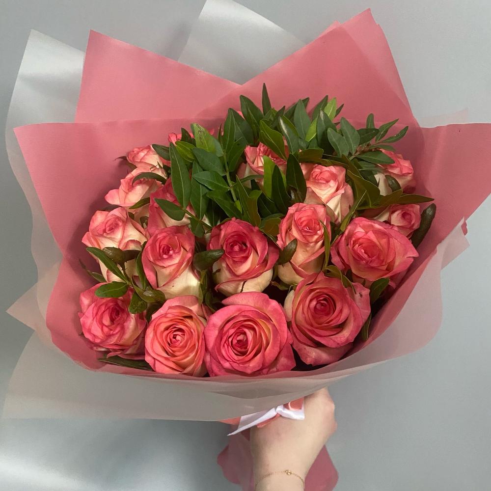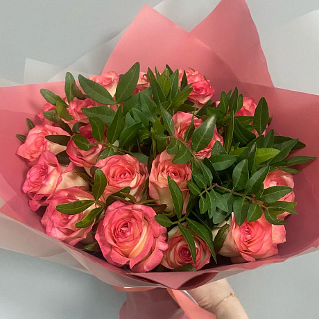 Закажите Букет из 19 роз Джумилия с зеленью с доставкой в Москве и МО.