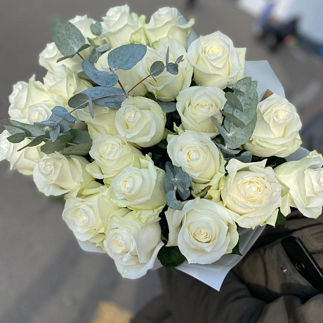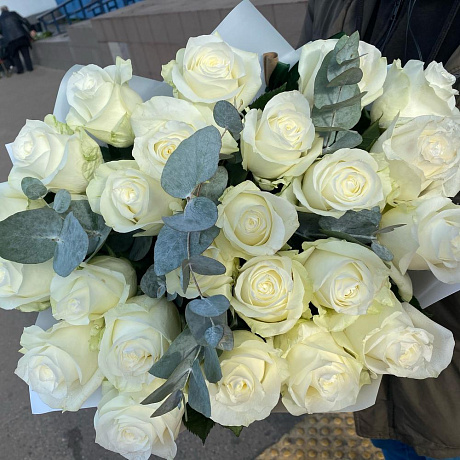 Закажите Букет из 25 белых эквадорских роз с доставкой в Москве и МО.