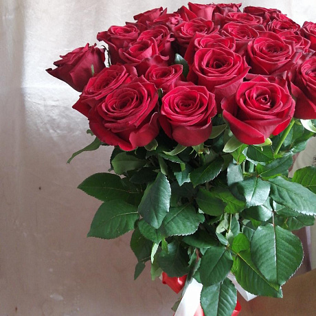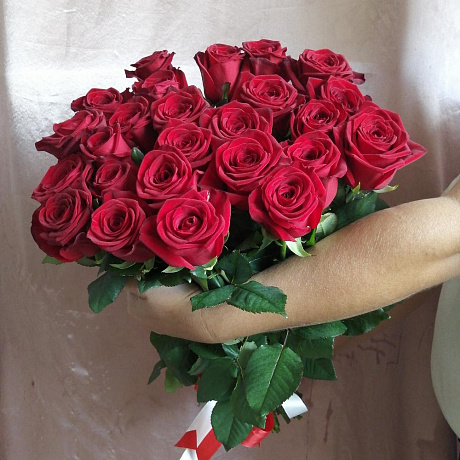 Закажите Букет из 25 бордовых роз №160 с доставкой в Москве и МО.