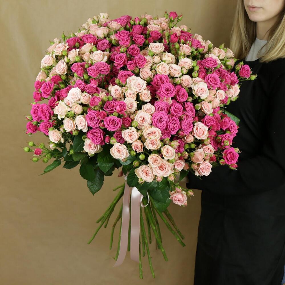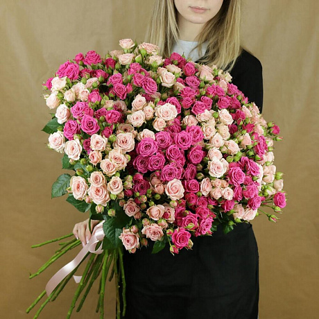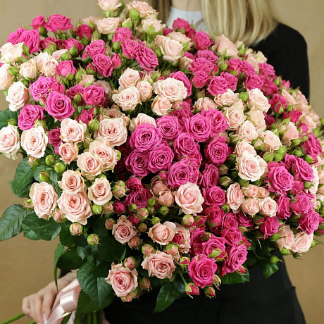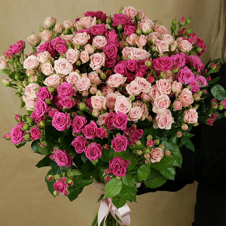 Закажите Букет из 25 кустовых кремовых и малиновых роз с доставкой в Москве и МО.