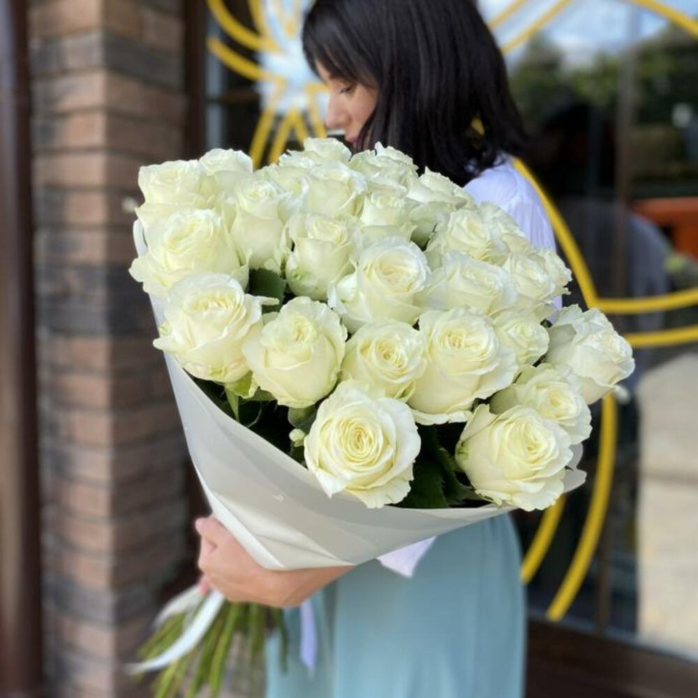 Закажите Букет из 25 роз Эквадор 50-60 см в нежной упаковке с доставкой в Москве и МО.