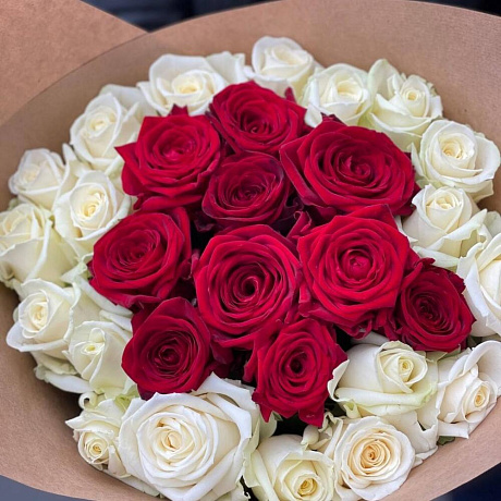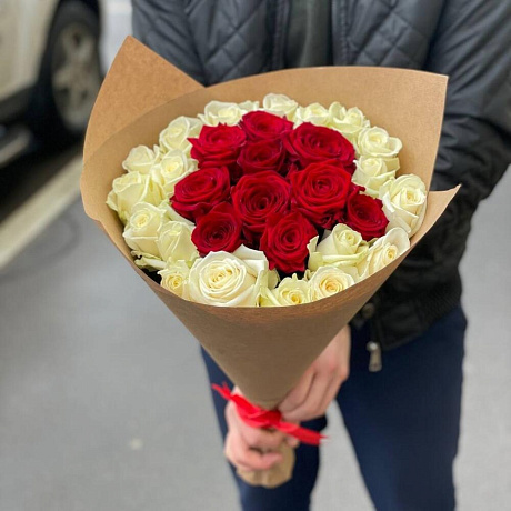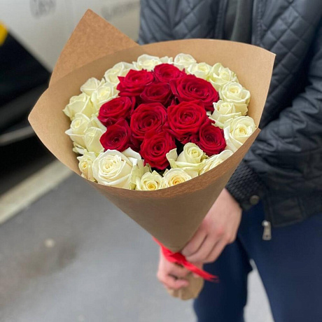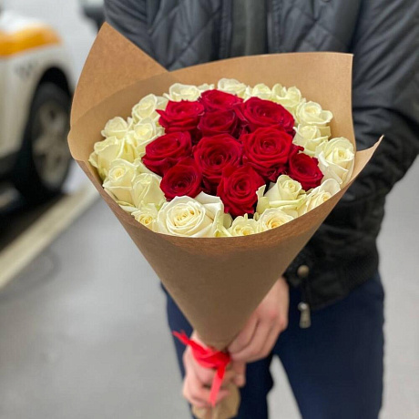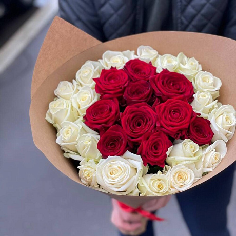 Закажите Букет из 29 красно-белых роз с доставкой в Москве и МО.