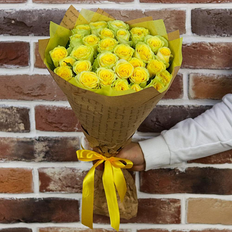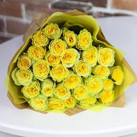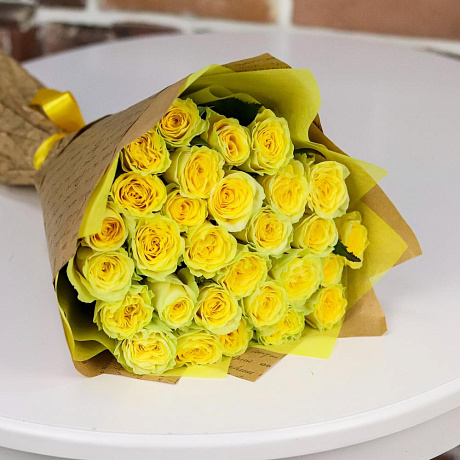 Букет из 29 желтых роз (50 см). N893 — отличный выбор для подарка! На сайте вы найдете красочные фотографии, которые помогут сделать выбор. Цена букета — 3700 руб.