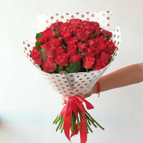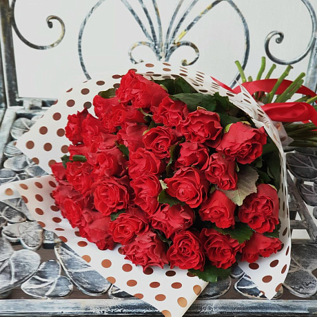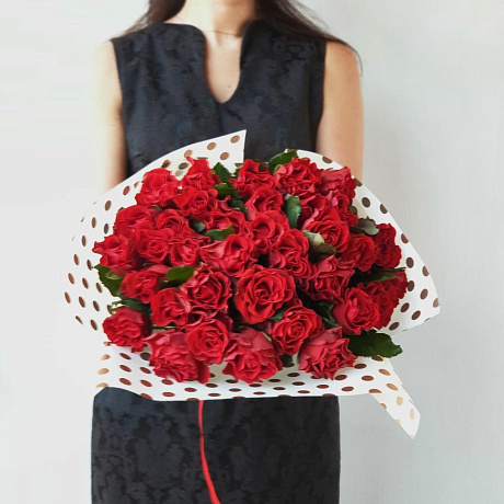 Букет из 35 алых роз в стильной упаковке