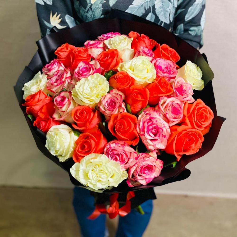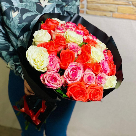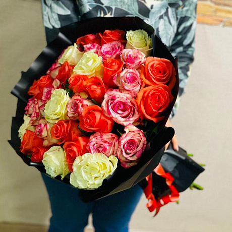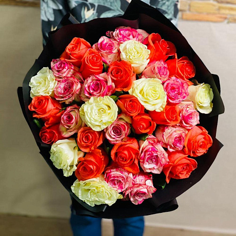 Закажите Букет из 35 разноцветных роз с доставкой в Москве и МО.