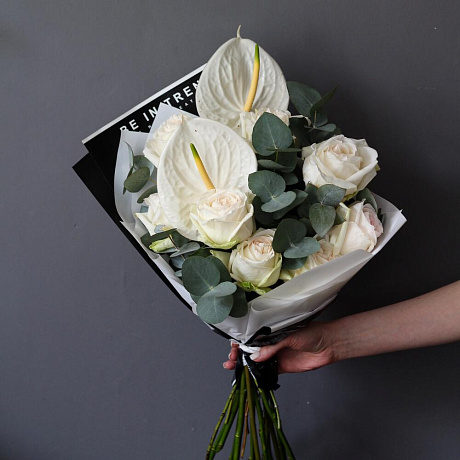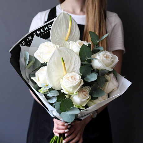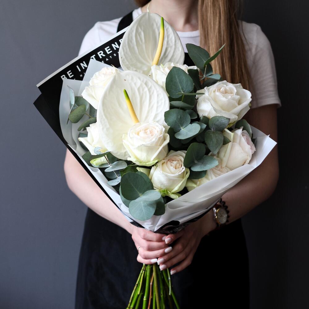 Закажите Букет из ароматных роз и антуриумов с доставкой в Москве и МО.