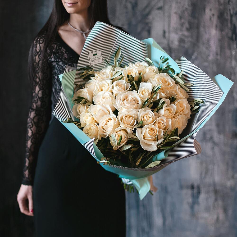 Закажите Букет из белых Роз и оливы с доставкой в Москве и МО.