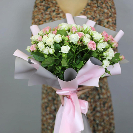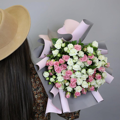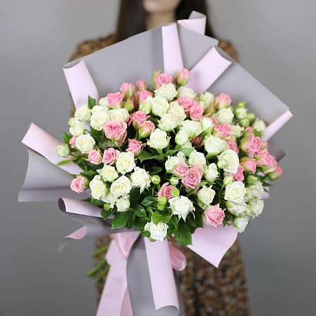 Закажите Букет из кустовых бело-розовых роз с доставкой в Москве и МО.