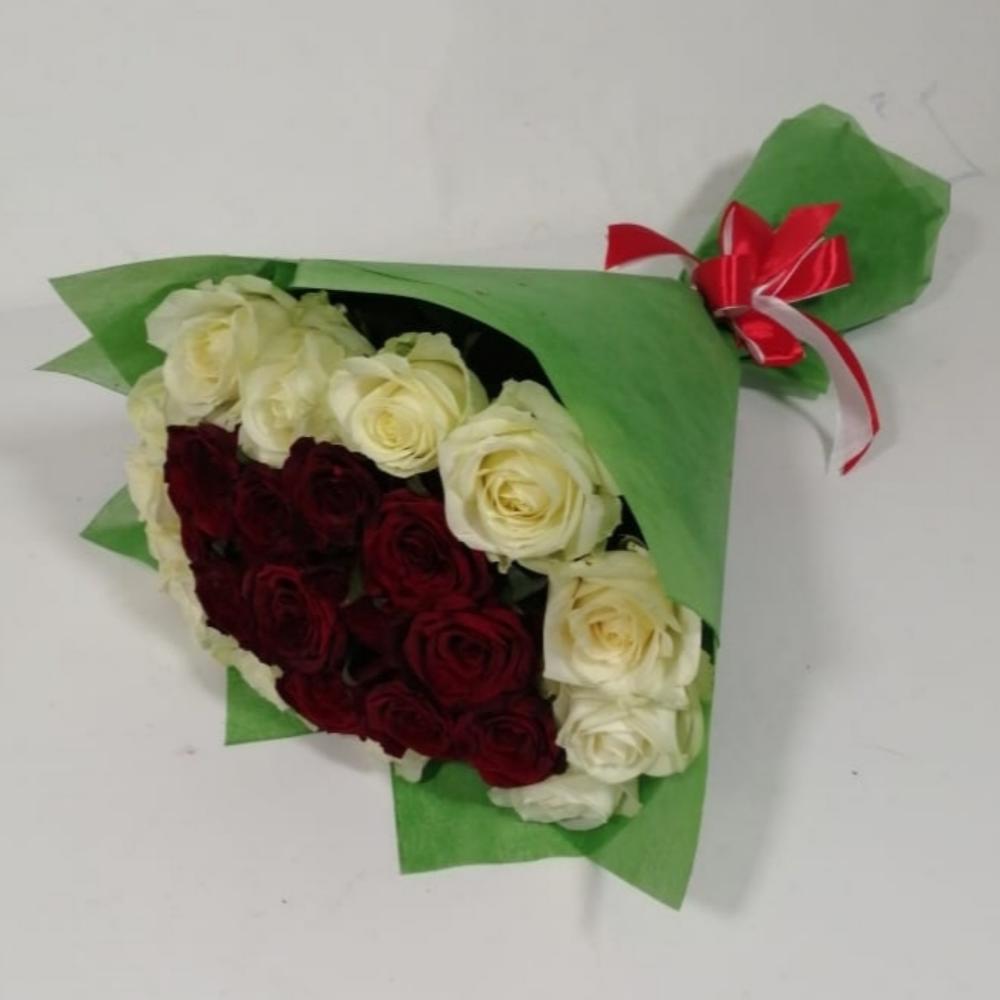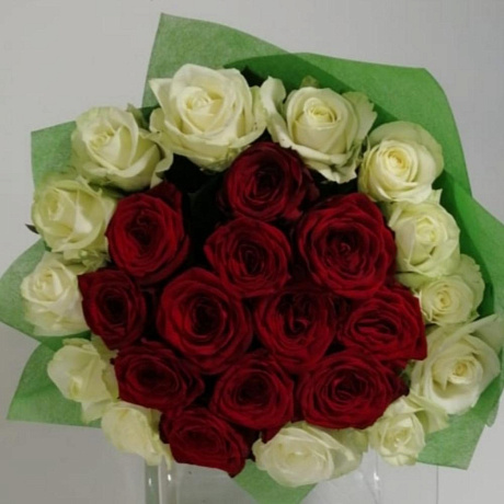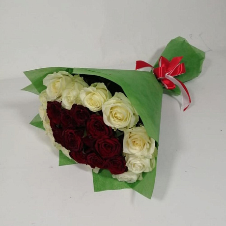 Букет из роз "красное в белом"