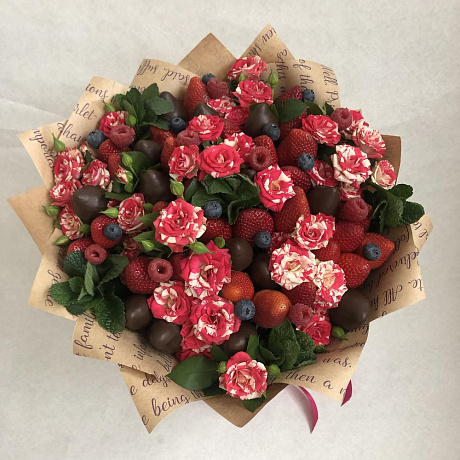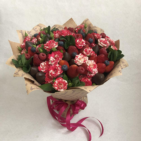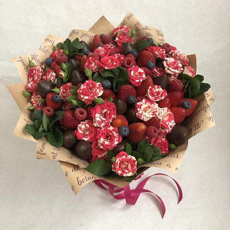 Закажите Букет из ярких розовых роз и ягод с доставкой в Москве и МО.