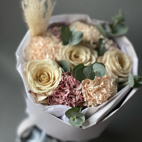 Букет «Капучино с малиной» — отличный выбор для подарка! На сайте вы найдете красочные фотографии, которые помогут сделать выбор. Цена букета — 2800 руб.