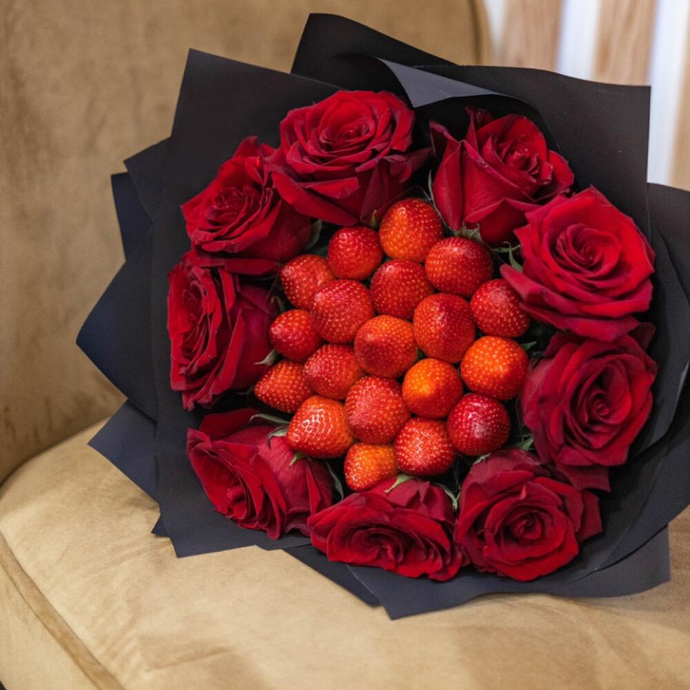 Закажите Букет клубничный с 9 розами с доставкой в Москве и МО.