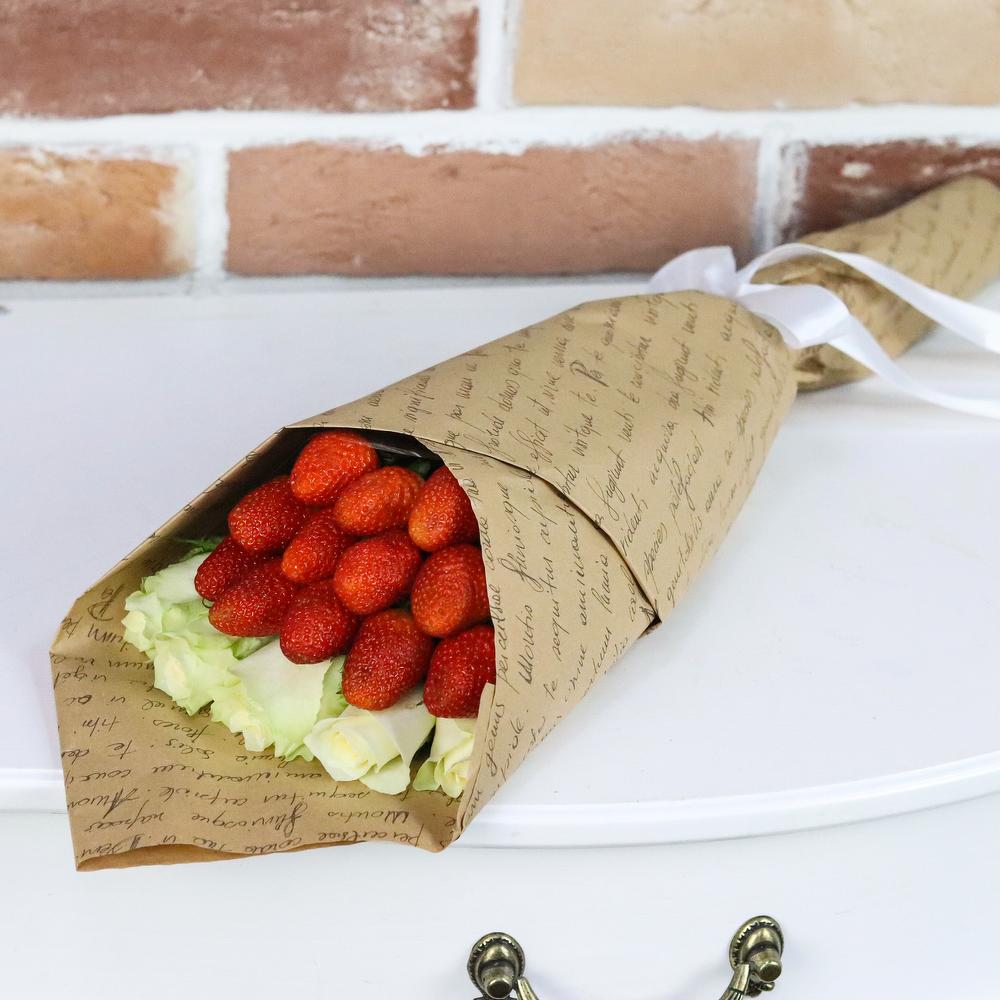 Букет комплимент. Белая Роза. Клубника. N907