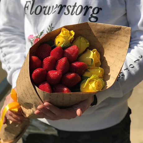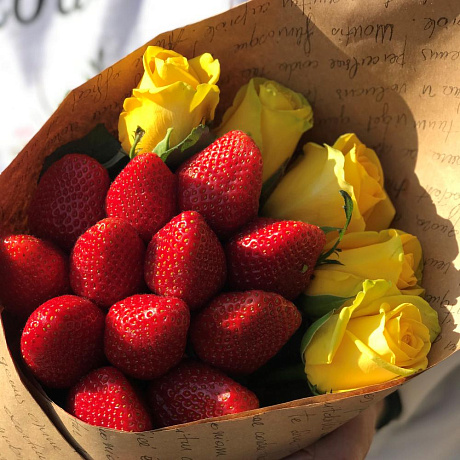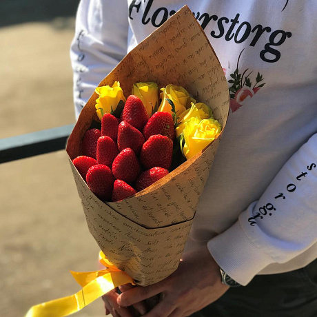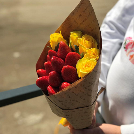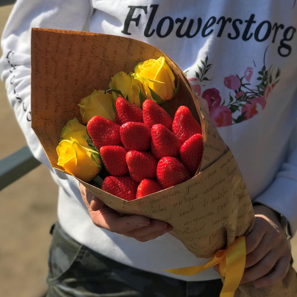 Закажите Букет комплимент. Жёлтая Роза. Клубника. N436 с доставкой в Москве и МО.
