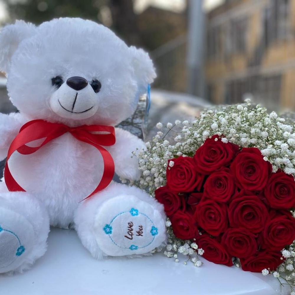 Закажите Букет с мишкой «Люблю» с доставкой в Москве и МО.