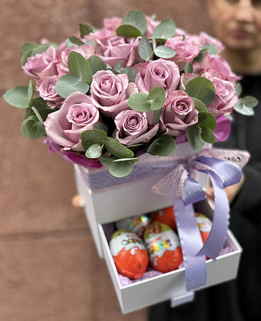 У нас можно заказать Букет шкатулка с кремовыми розами с доставкой по Москве.